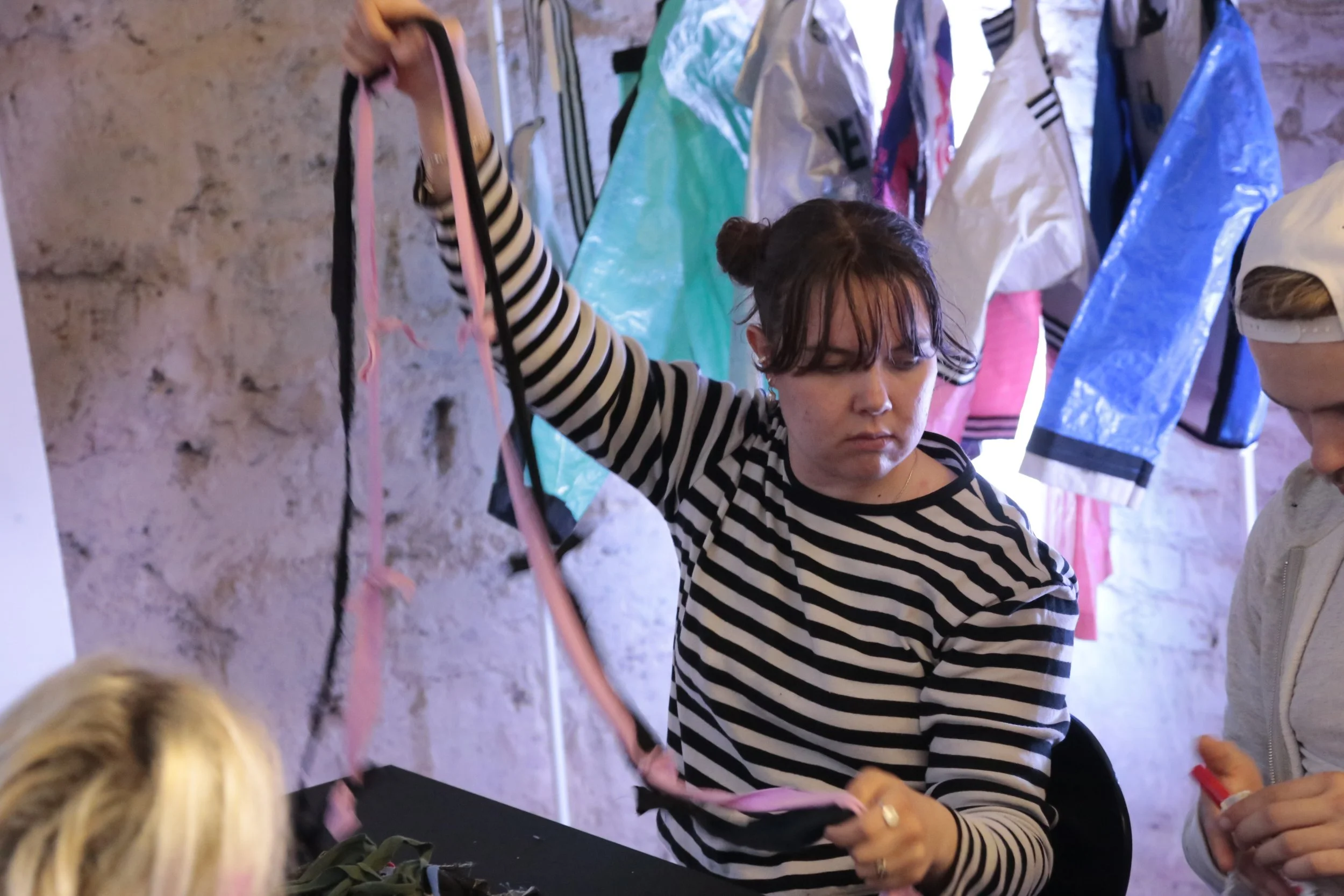 Im DIY-Upcycling-Workshop entstanden Schlüsselband-Kordeln aus alten Stoffresten. Eine Ausstellung von Lynn Joana Witzel und Ana-Katarina Raketic zeigte Mode als Aktivismus.